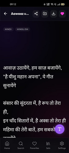 Recently Viewed: The app remembers what you read recently, so you can return to the same lyrics without searching again.